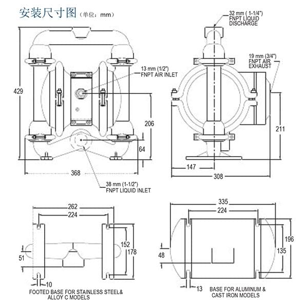 介質(zhì)出口尺寸.....................................1-1/4” (32 mm)