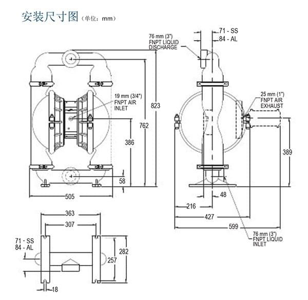 介質(zhì)出口尺寸...............................3” (76 mm)