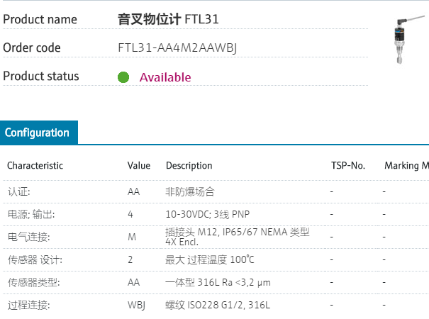 E+H 音叉液位計(jì) FTL31-AA4M2AAWBJ 限位檢測(cè)開關(guān) FTL31-1102/0