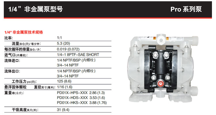 英格索蘭氣動(dòng)隔膜泵1/4寸非金屬ARO隔膜泵PD01P-HPS-PAA-A
