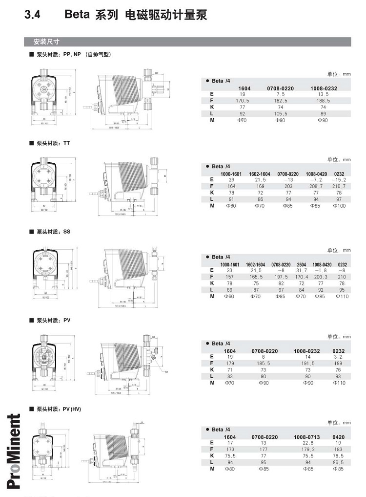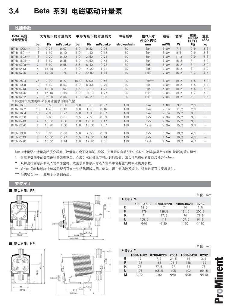 Beta型號(hào)壓力流量沖程流量沖程頻率連接尺寸吸程