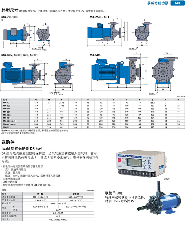 磁力泵MX-250型 易威奇IWAKI無泄漏高性能污水泵 耐酸堿泵