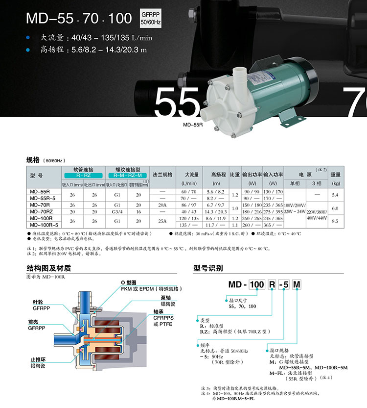易威奇MD-55R-220N磁力泵 IWAKI 喉結(jié)式磁力驅(qū)動泵 耐腐蝕電鍍泵