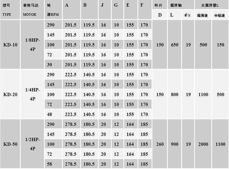 攪拌能力:100~2000L,電機(jī)功率 100~400W