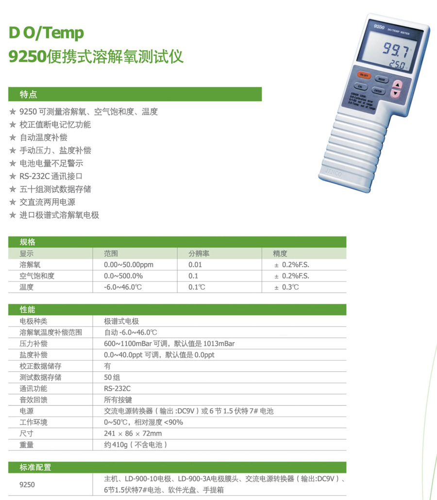 溶解氧測試儀9250型 JENCO/任氏便攜式數(shù)顯實驗室空氣飽和度儀器