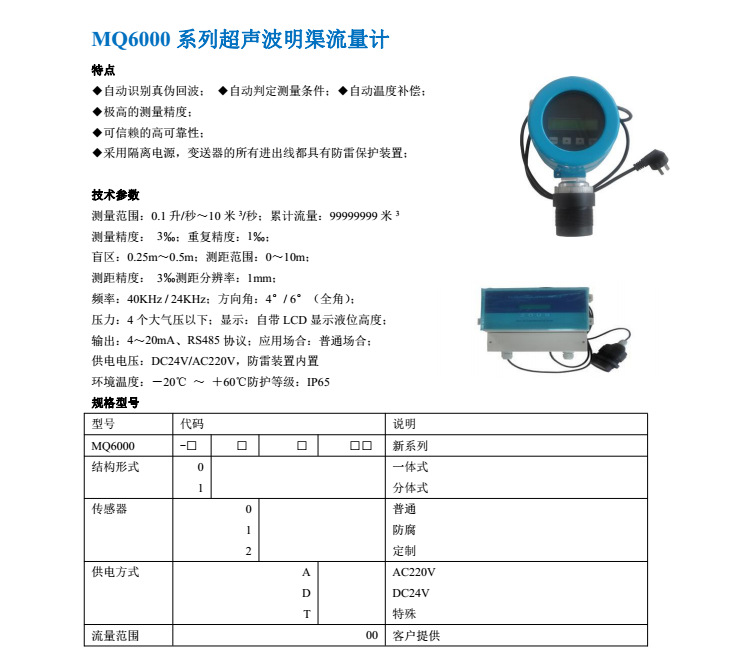 Apure愛普爾超聲波明渠流量計MQ6000LCD流量計