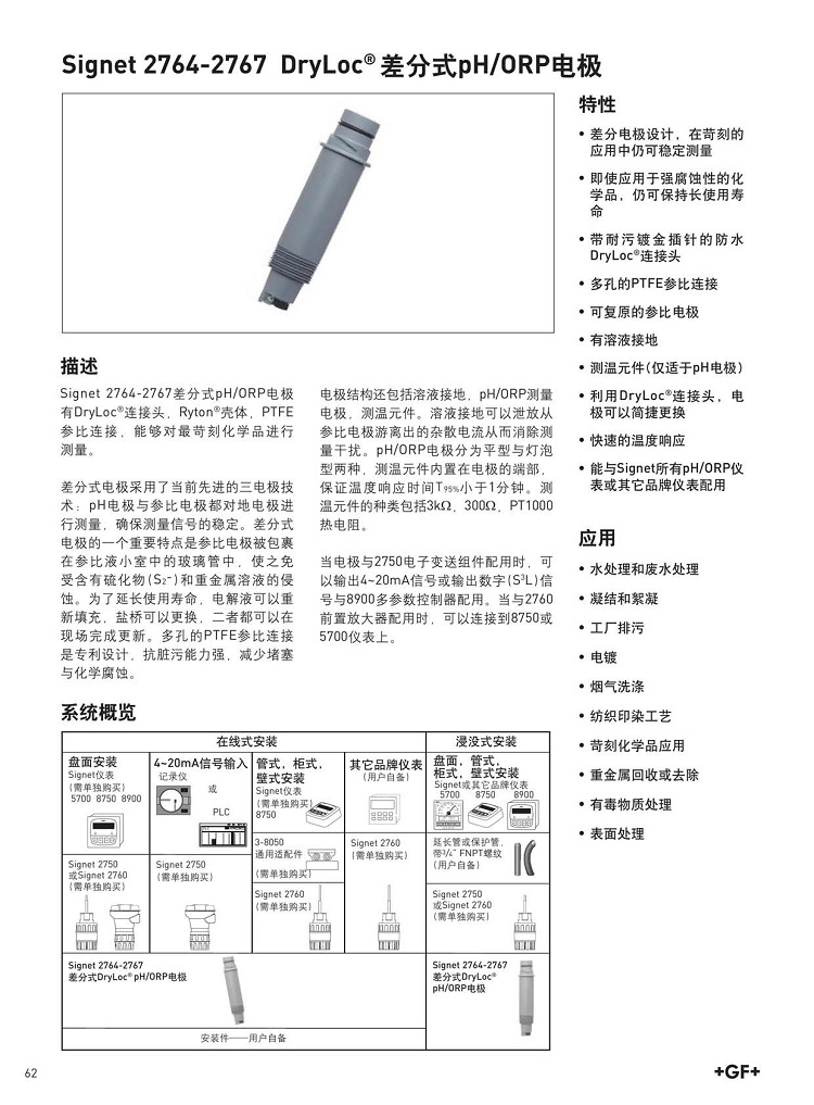 GF差分式PH/ORP電極3-2764-2 酸度計探頭
