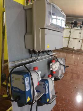 三臺(tái)或者四臺(tái)加藥計(jì)量泵可選,投加絮凝劑計(jì)量泵, 加酸計(jì)量泵,加氯計(jì)量泵和除藻劑加藥泵。
