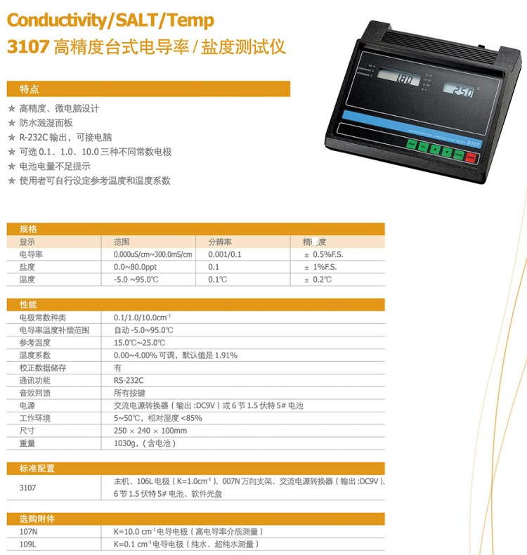 3107型高準(zhǔn)確度臺式電導(dǎo)率/鹽度計
