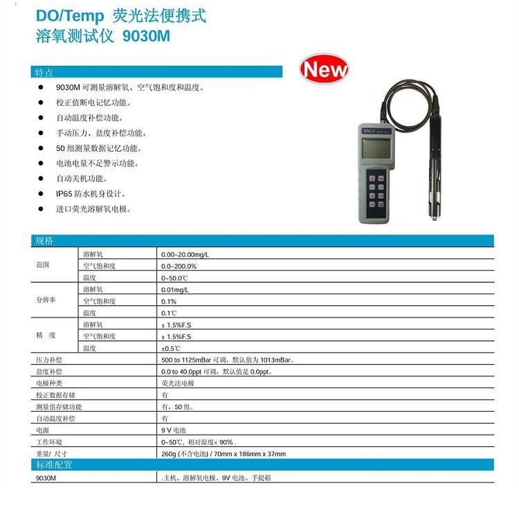 溶解氧測(cè)試儀9030M型 JENCO/任氏便攜數(shù)顯熒光法