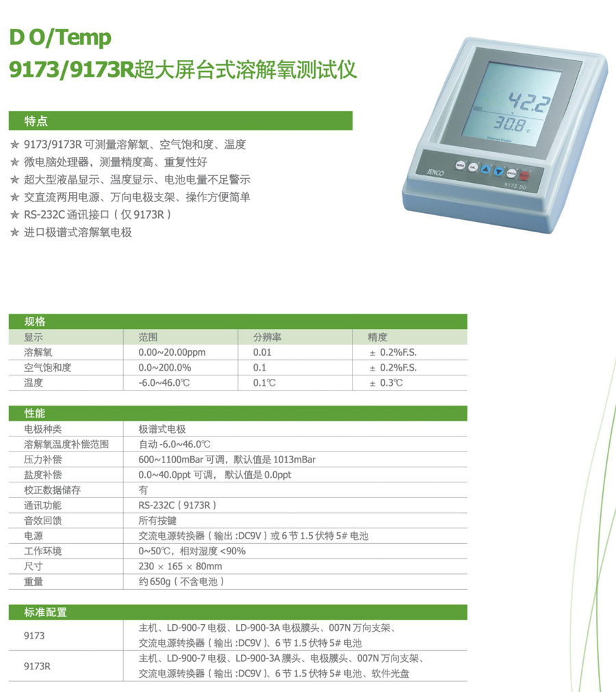 9173R型臺(tái)式大屏溶解氧測(cè)試儀