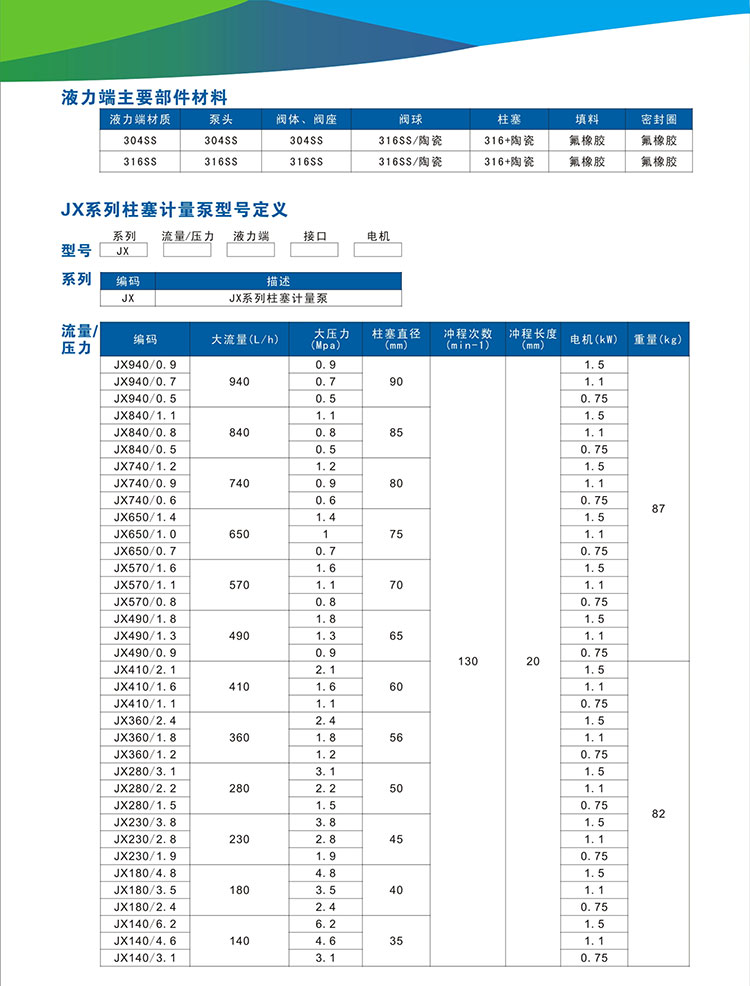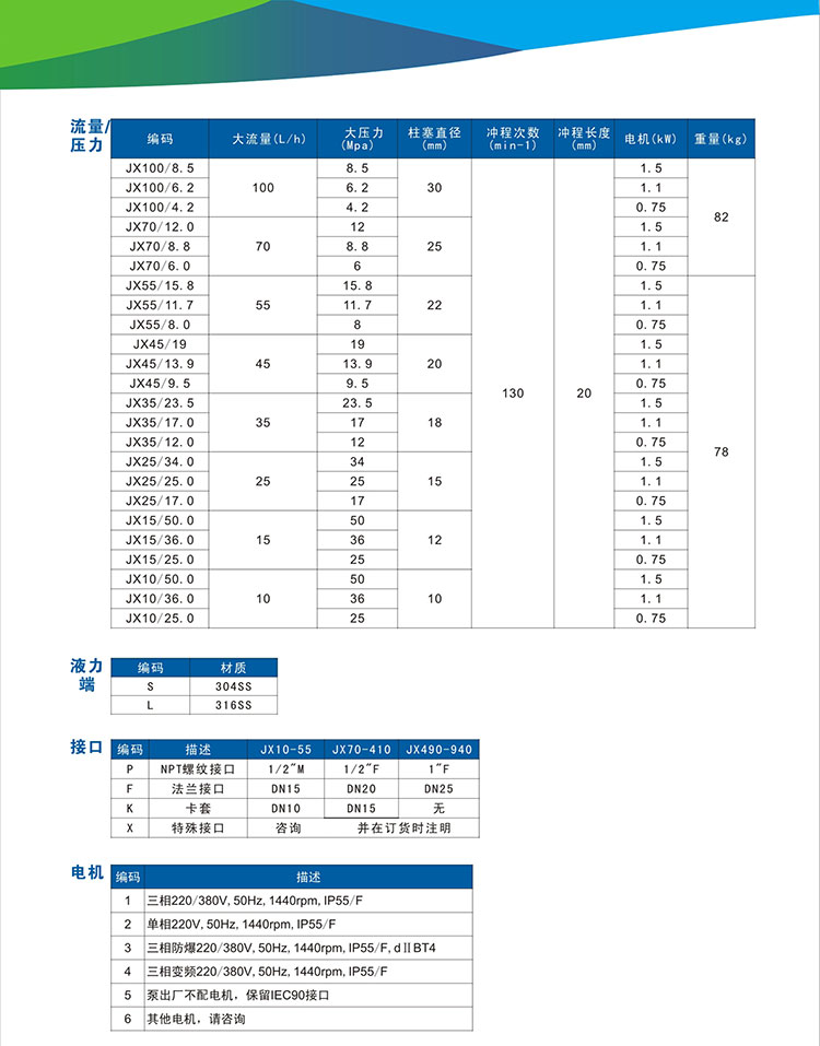 (南方)柱塞式計(jì)量泵JX10/50.0