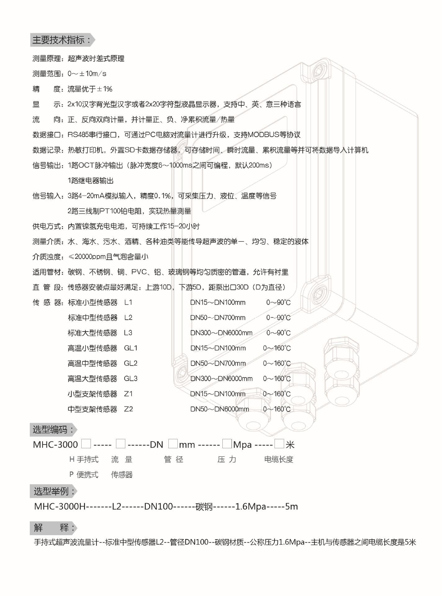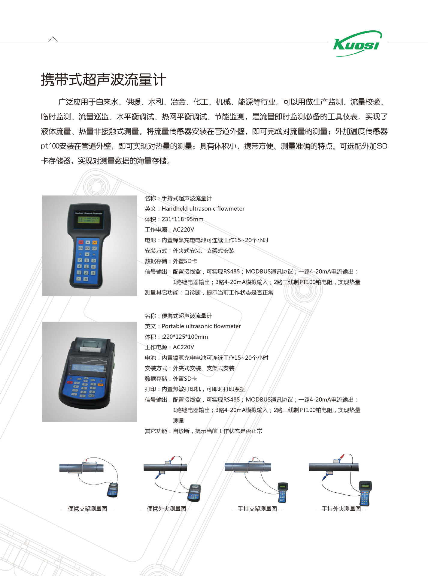 便攜式超聲波流量計(jì)水手持式管道式管壁外夾式液體傳感器