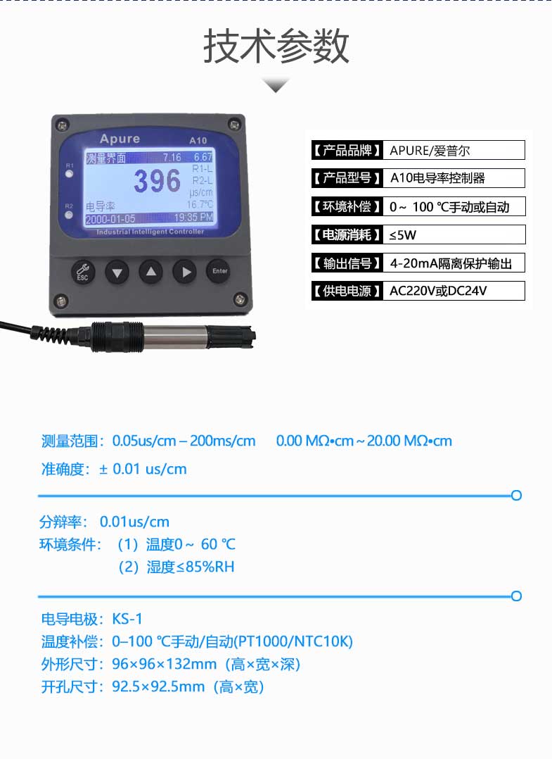 Apure電導(dǎo)率愛普爾A10CD工業(yè)在線電導(dǎo)/電阻率控制器