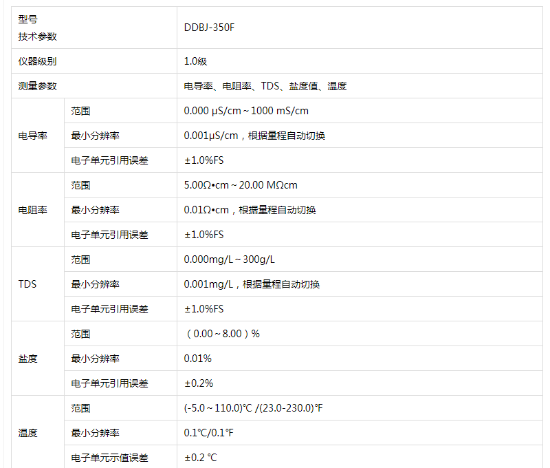 便攜式電導(dǎo)率DDBJ-350F技術(shù)參數(shù)