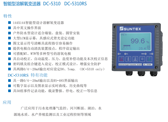 SUNTEX 智能型溶解氧變送器DC-5310  DC-5310RS