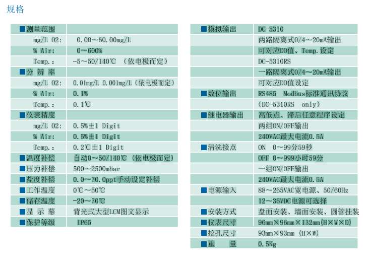 SUNTEX 智能型溶解氧變送器DC-5310 DC-5310RS