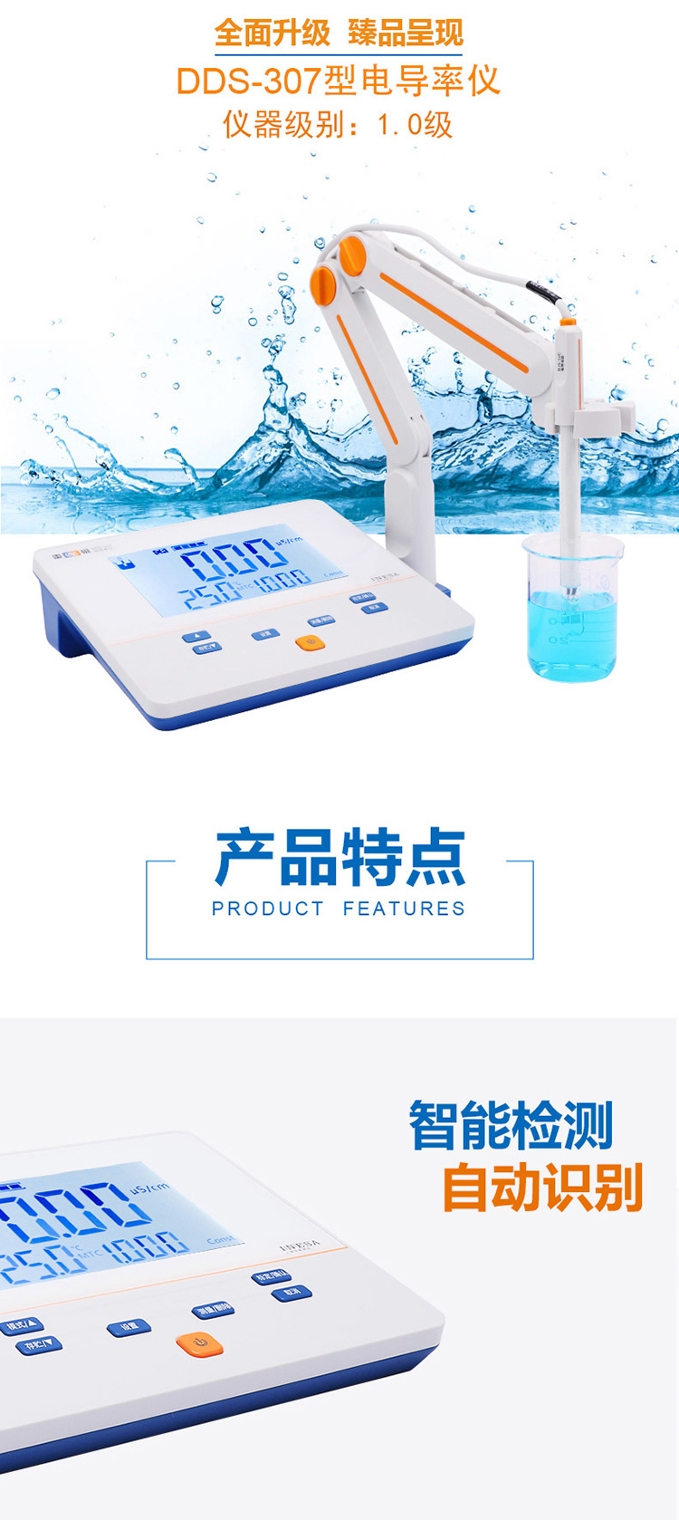 雷磁DDS-307型臺式電導(dǎo)率儀液晶顯示手動溫度補償電導(dǎo)測試儀器