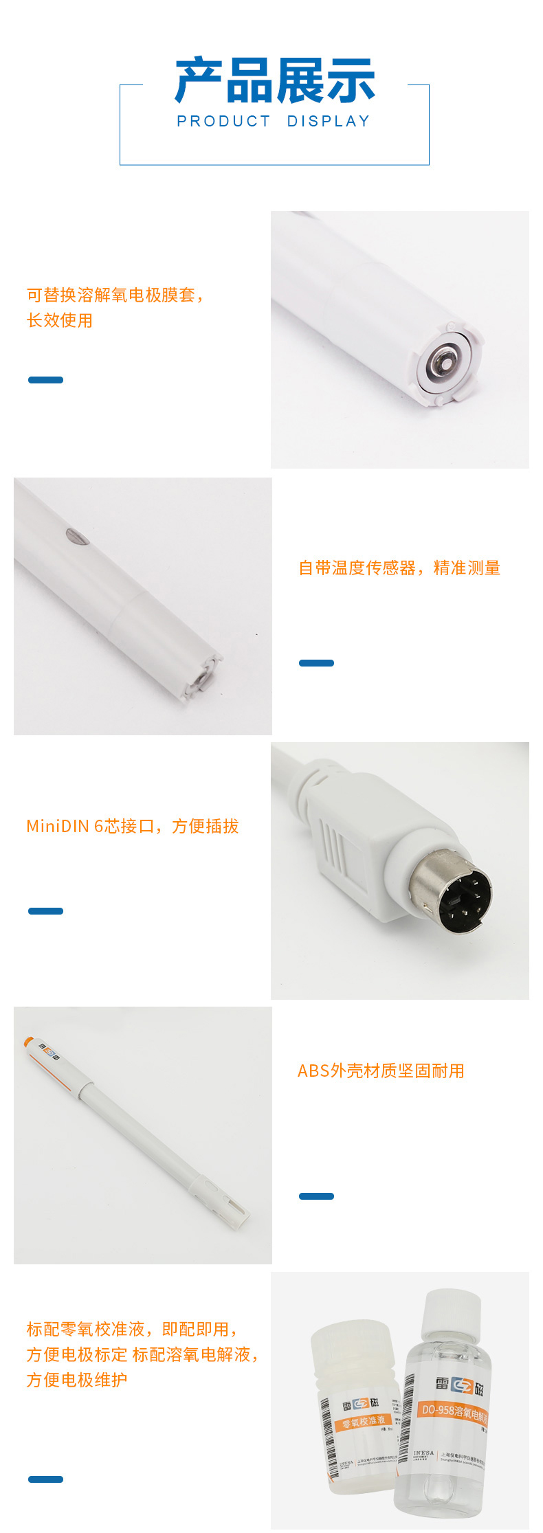 雷磁(leici)溶解氧電極DO-958-L 實(shí)驗(yàn)室電極傳感器探頭ABS外殼材質(zhì)電極