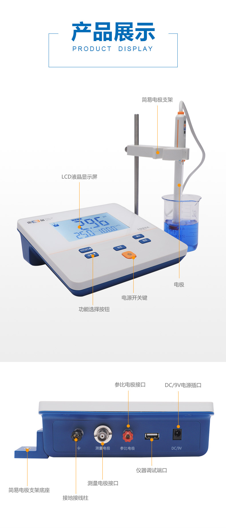 雷磁(leici)基礎(chǔ)款PHS-2F型實(shí)驗(yàn)室PH計(jì)臺(tái)式標(biāo)配套裝液晶顯示酸度計(jì)