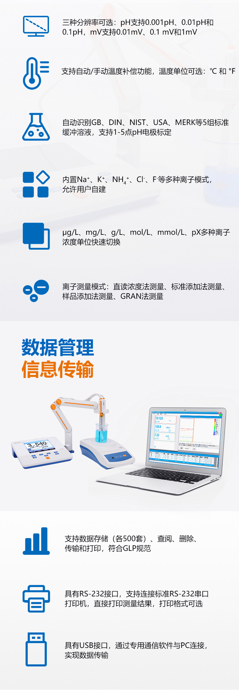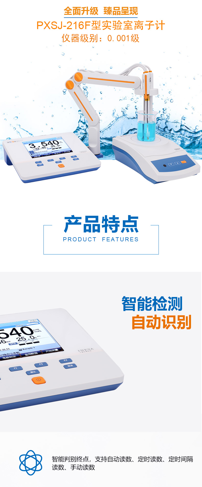 雷磁(leici)PXSJ-216F型離子計液晶屏幕自動手動溫度補償多種離子模式