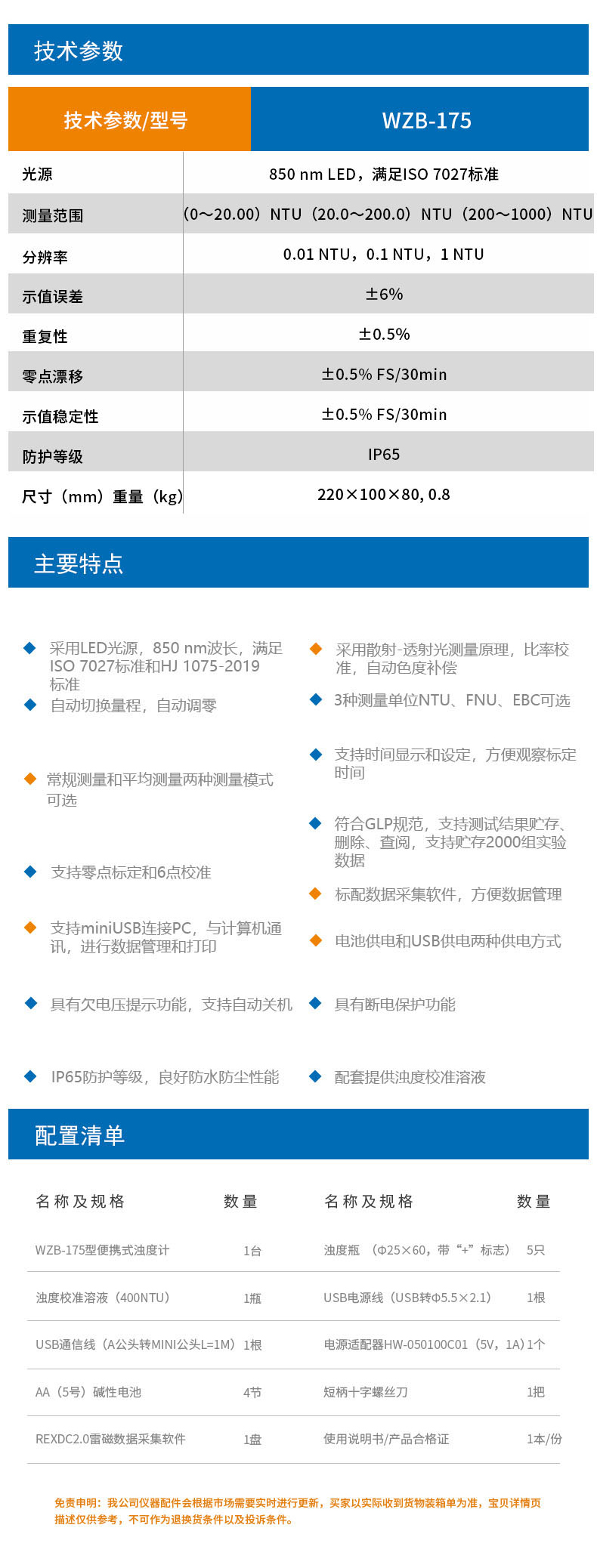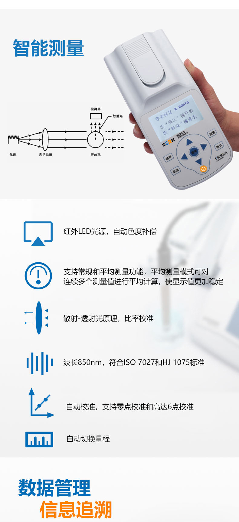 雷磁(leici)濁度儀WZB-175型便攜式濁度計(jì)水質(zhì)分析儀標(biāo)準(zhǔn)自動(dòng)色度補(bǔ)償