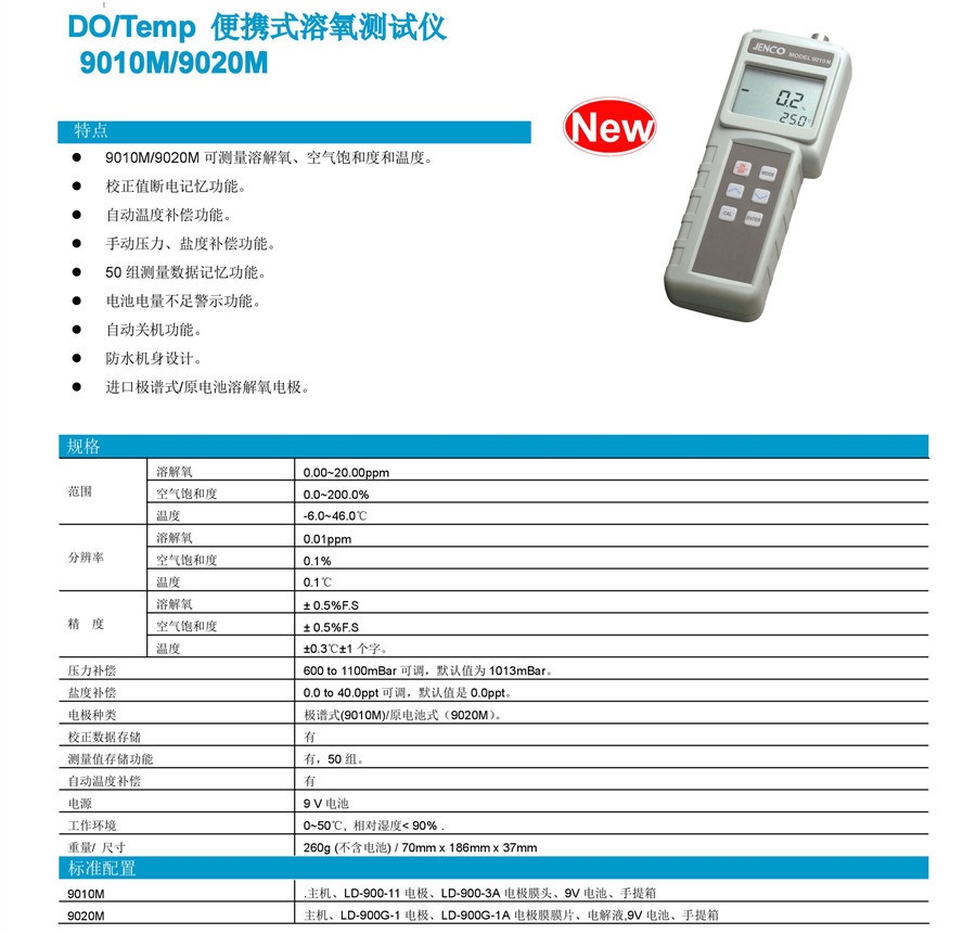 (JENCO/任氏)便攜數(shù)顯溶解氧測(cè)試儀9010M