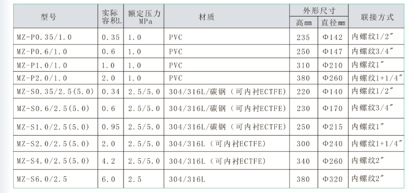 材質(zhì)有304、316、內(nèi)襯式及PVC等,我公司備有以下型號(hào)的產(chǎn)品,可供客戶(hù)選擇,若有特殊需求,可單獨(dú)訂購(gòu)。膜片式脈沖阻尼器高使用壓力為:PVC材質(zhì)的為1.0MPa,金屬材質(zhì)的為2.5MPa,禁止超壓使用,以免殼體破裂發(fā)生危險(xiǎn)。使用溫度不高于75。使用溫度不低于5,建議使用溫度10~45。