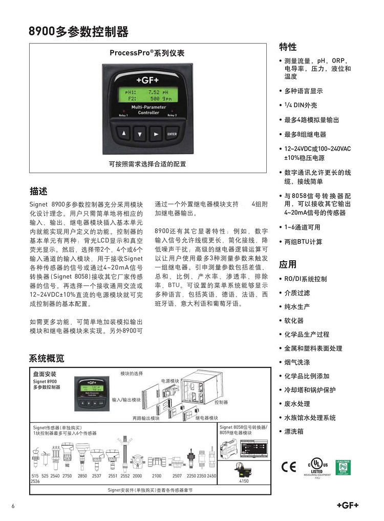 8900GF儀表配合使用的多參數(shù)(流量,PH,ORP,電導(dǎo)率,溫度,壓力等)控制器.可配合使用+gf+signet絕大多數(shù)儀表.