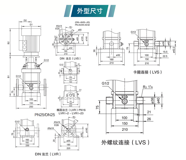 利歐水泵LVR(S)系列立式多級(jí)離心泵高層建筑給排水泵輸送泵管道泵