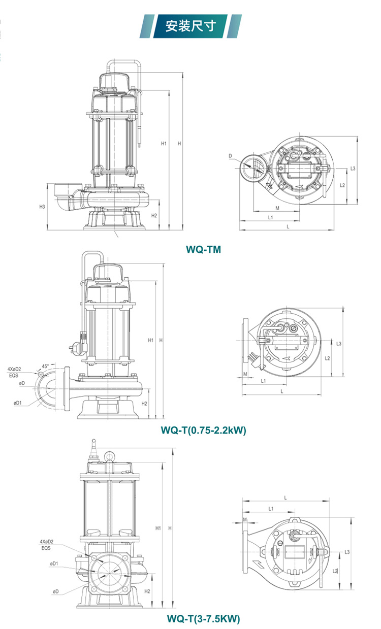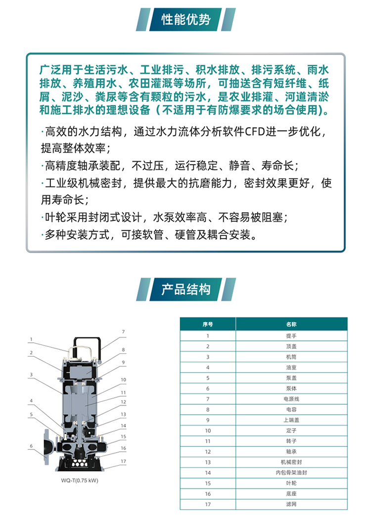利歐水泵WQ-T中污系列潛污泵生活污水工業(yè)排污切割式潛水泵污水泵