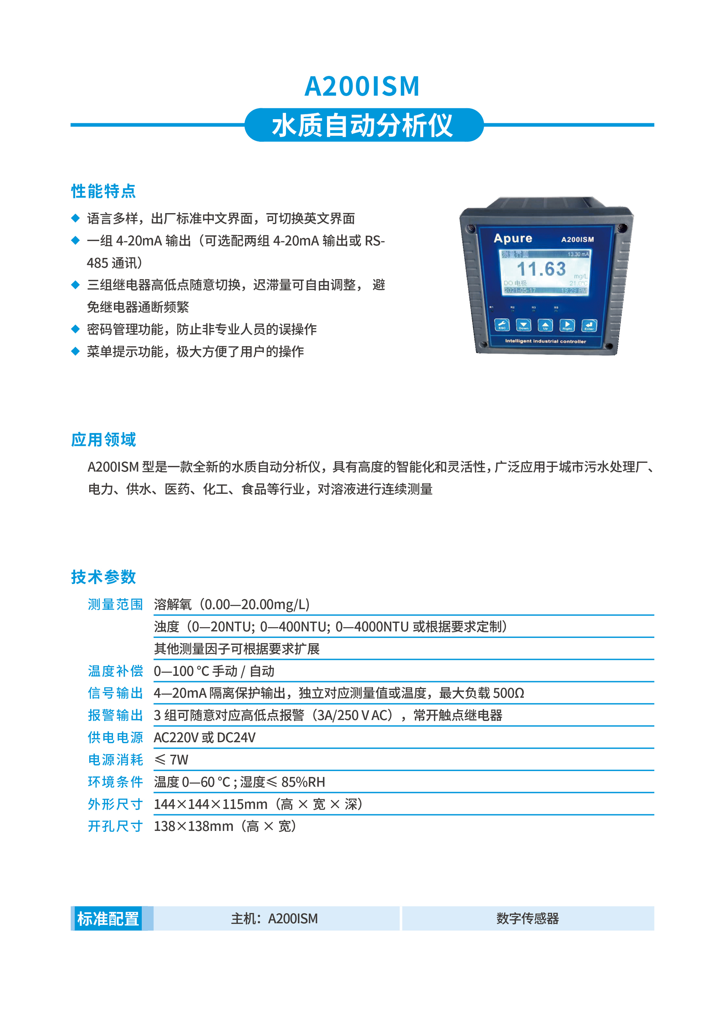 Apure水質(zhì)自動(dòng)分析儀A200ISM臺(tái)式溶氧測試儀濁度檢測儀