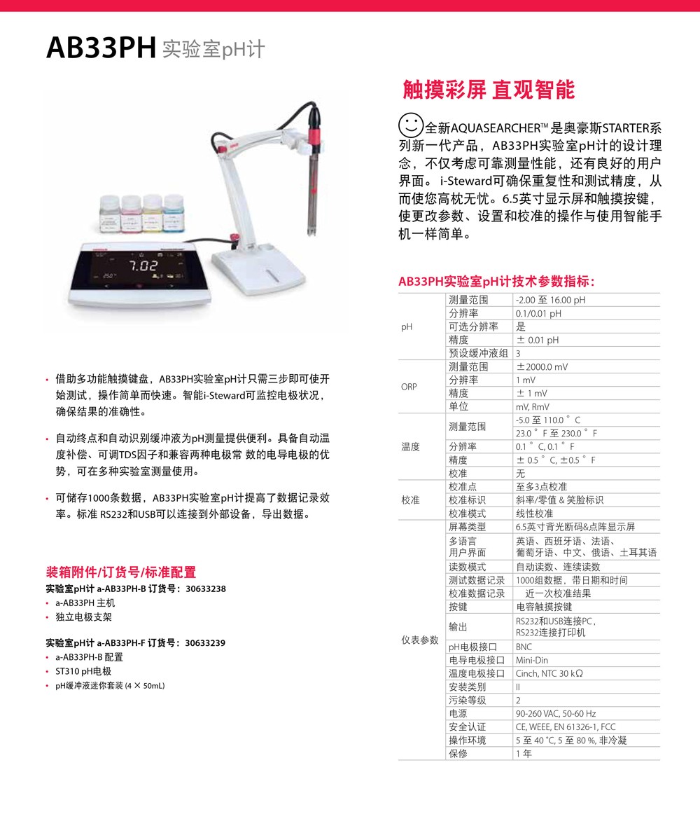 奧豪斯實(shí)驗(yàn)室pH計(jì)AB41PH/AB33PH/AB23PH智能酸度計(jì)測(cè)試儀ph測(cè)定儀