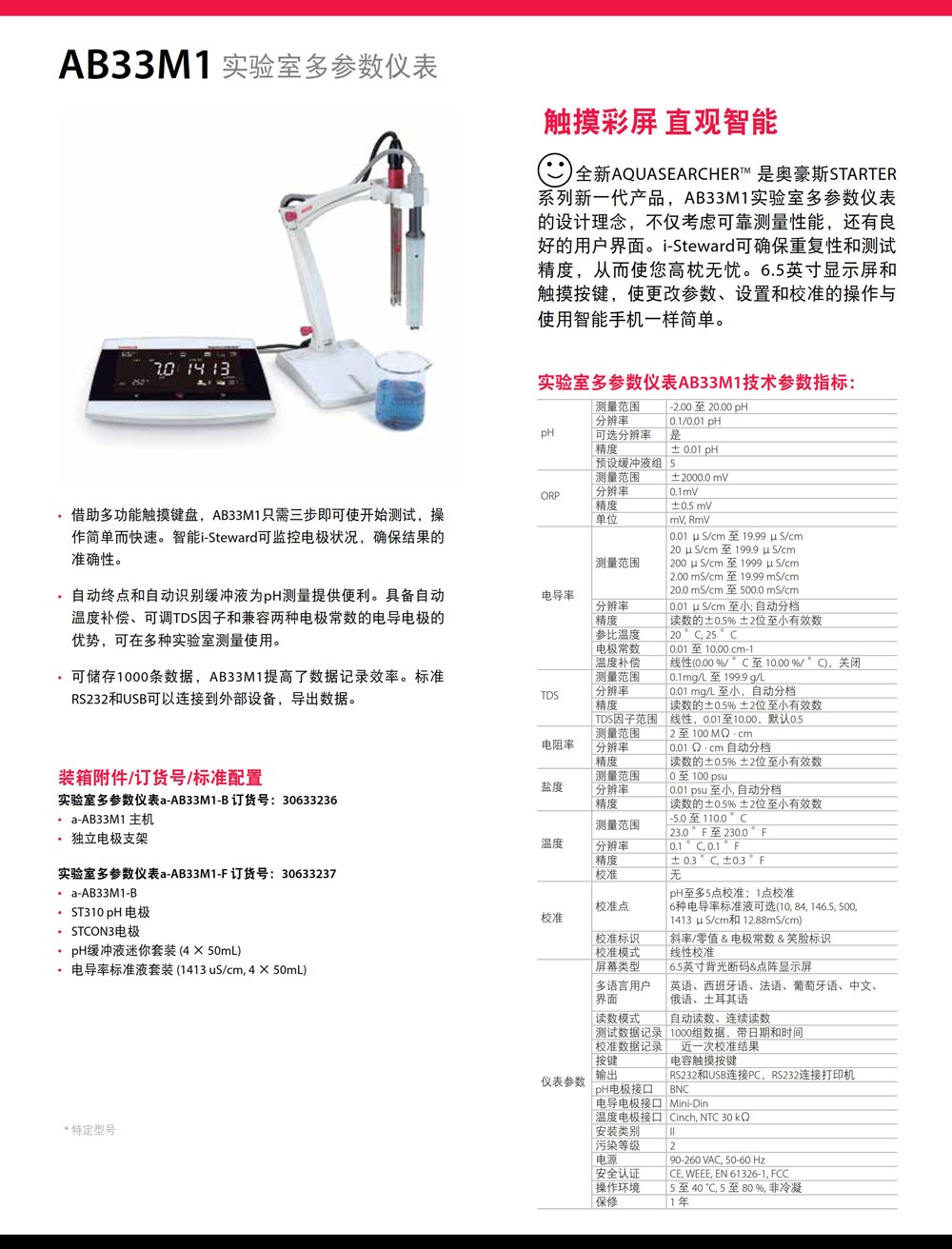 奧豪斯實驗室多參數儀表AB33M1智能ph電導率ORP多參數水質分析儀