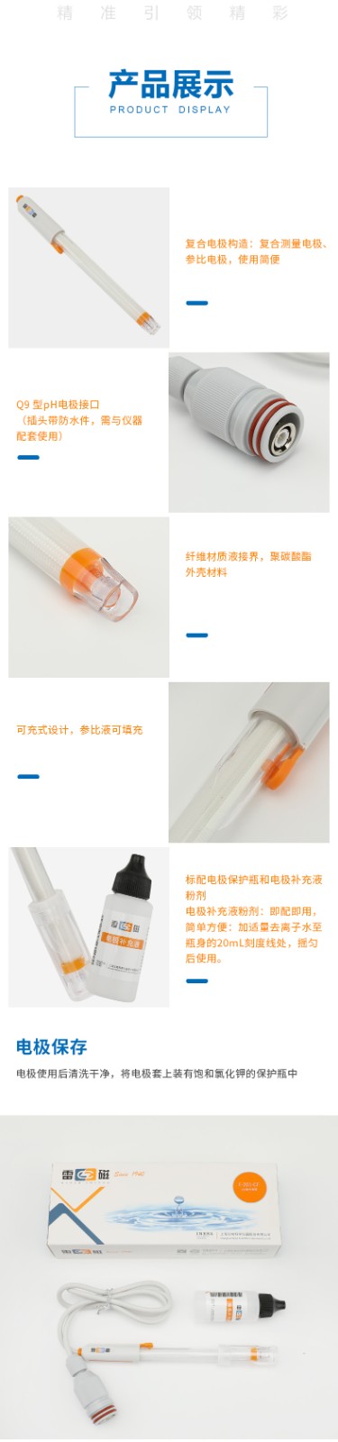 【雷磁】實驗室ph電極 E-201-CF型pH復合電極