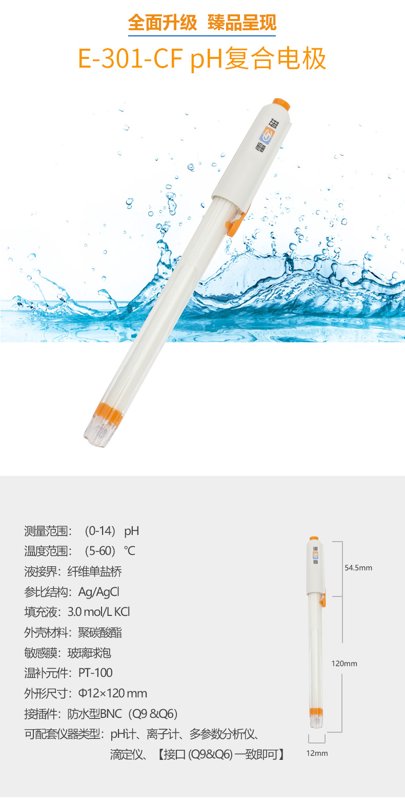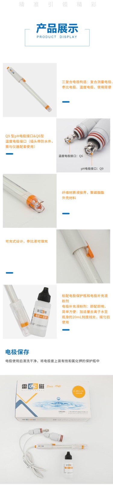 【雷磁】E-301-CF型pH三復(fù)合電極