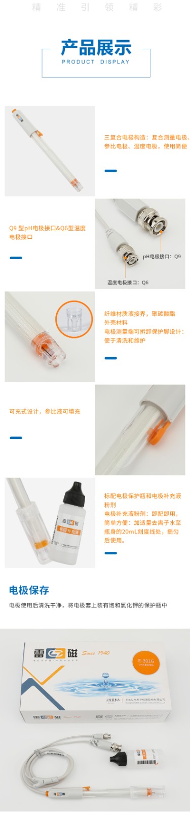 【雷磁】E-301G型pH三復(fù)合電極