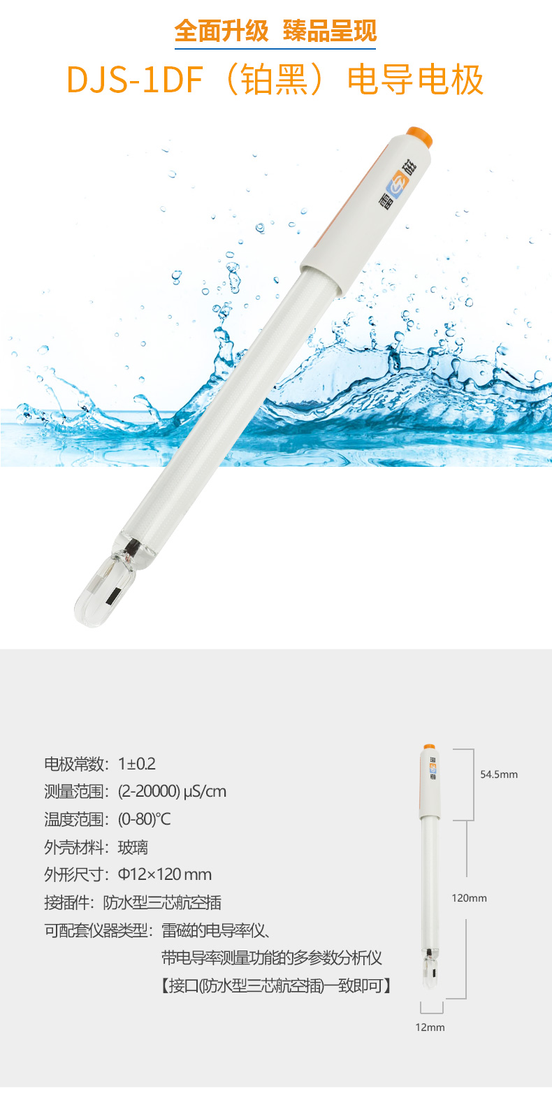 【雷磁】 實驗室電導(dǎo)率傳感器測 DJS-1DF 型電導(dǎo)電極【鉑黑】