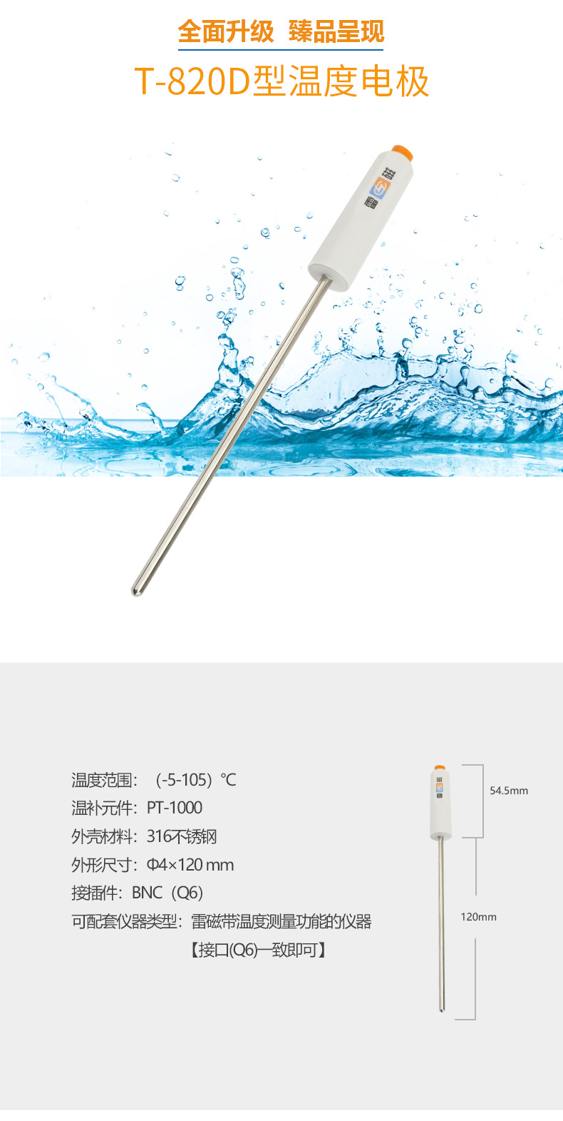 【雷磁】 溫度電極系列 T-820D型溫度電極