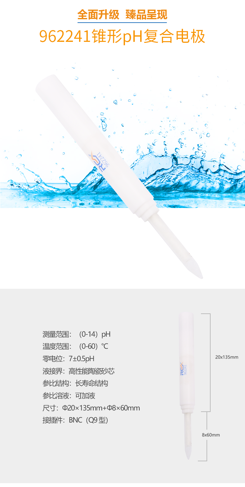 【雷磁】高端ph電極高精度 962241錐形ph復(fù)合電極