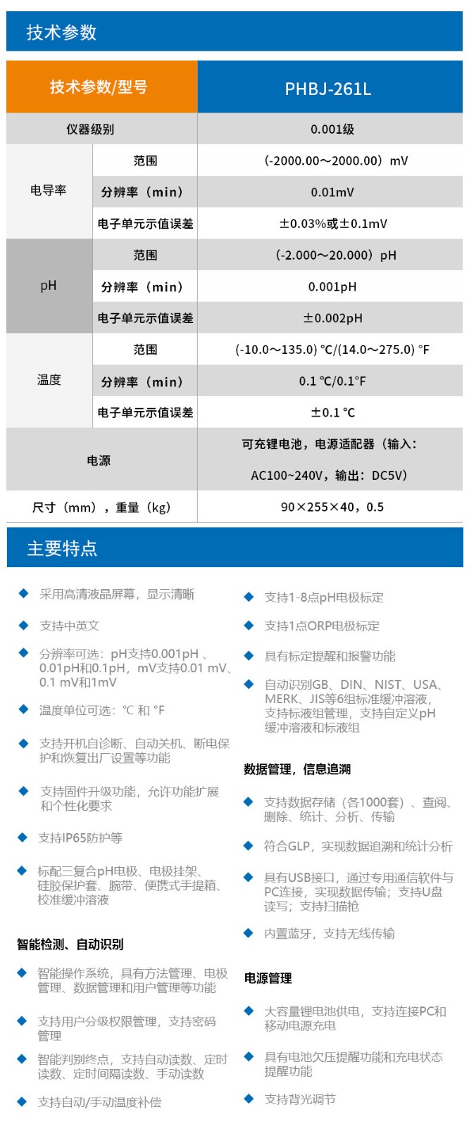 雷磁PHBJ系列便攜式pH計 260/260F/261L手持式數(shù)顯pH檢測儀