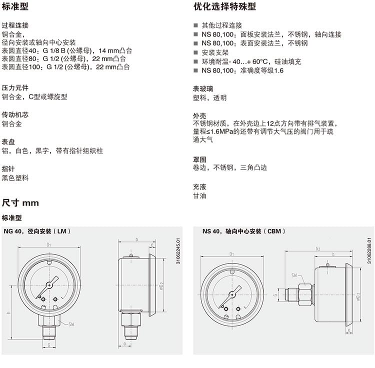2. 膜片壓力表,化學(xué)工業(yè)型,表頭不充液/充液,高過壓保護(hù)壓力表,針對UHP應(yīng)用:422.12 432.50 432.56 423.36 423.25