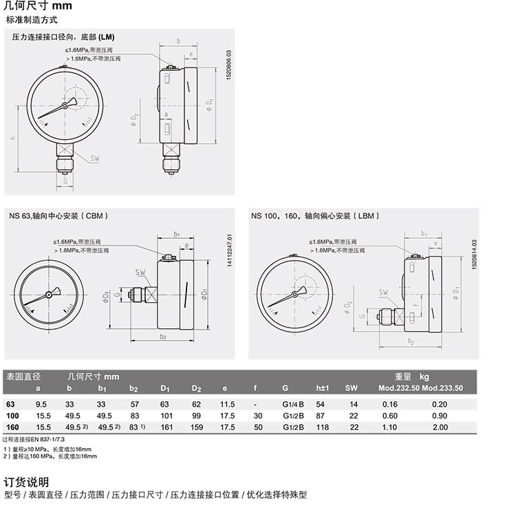 精度等級(jí):63mm:1.6;100,160mm:1.0