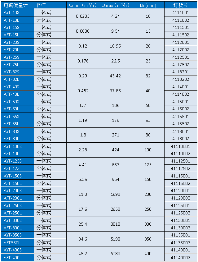 【一體式電磁流量計(jì)】電磁流量計(jì)APURE電磁流量計(jì)選型表