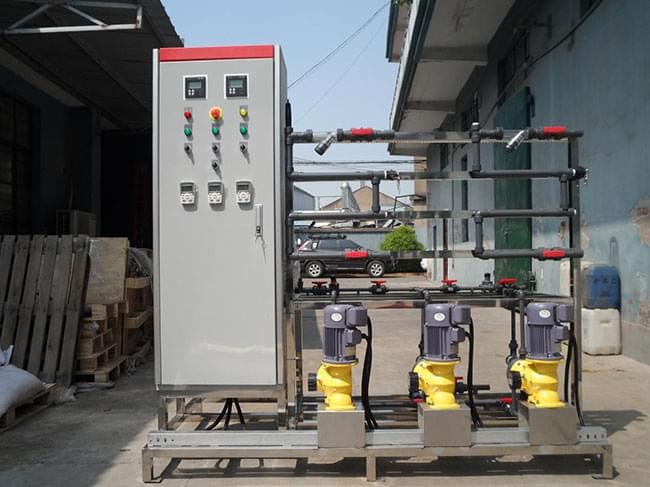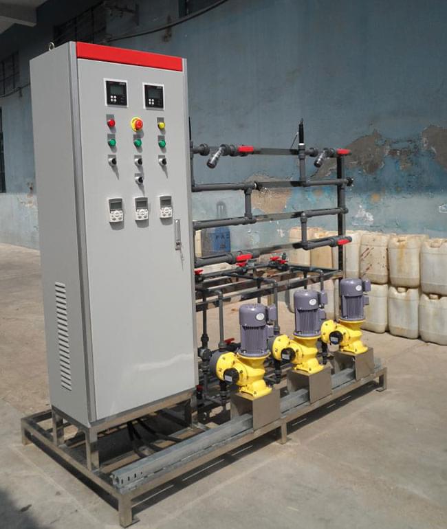 循環(huán)冷卻水,冷凍水根據(jù)不同循環(huán)比例、控制方式可實現(xiàn)定時定量加藥、遠程數(shù)據(jù)控制加藥,三種藥劑分三通道加藥,每個通道根據(jù)不同的時段,不同的藥劑量設置遠程控制加藥。