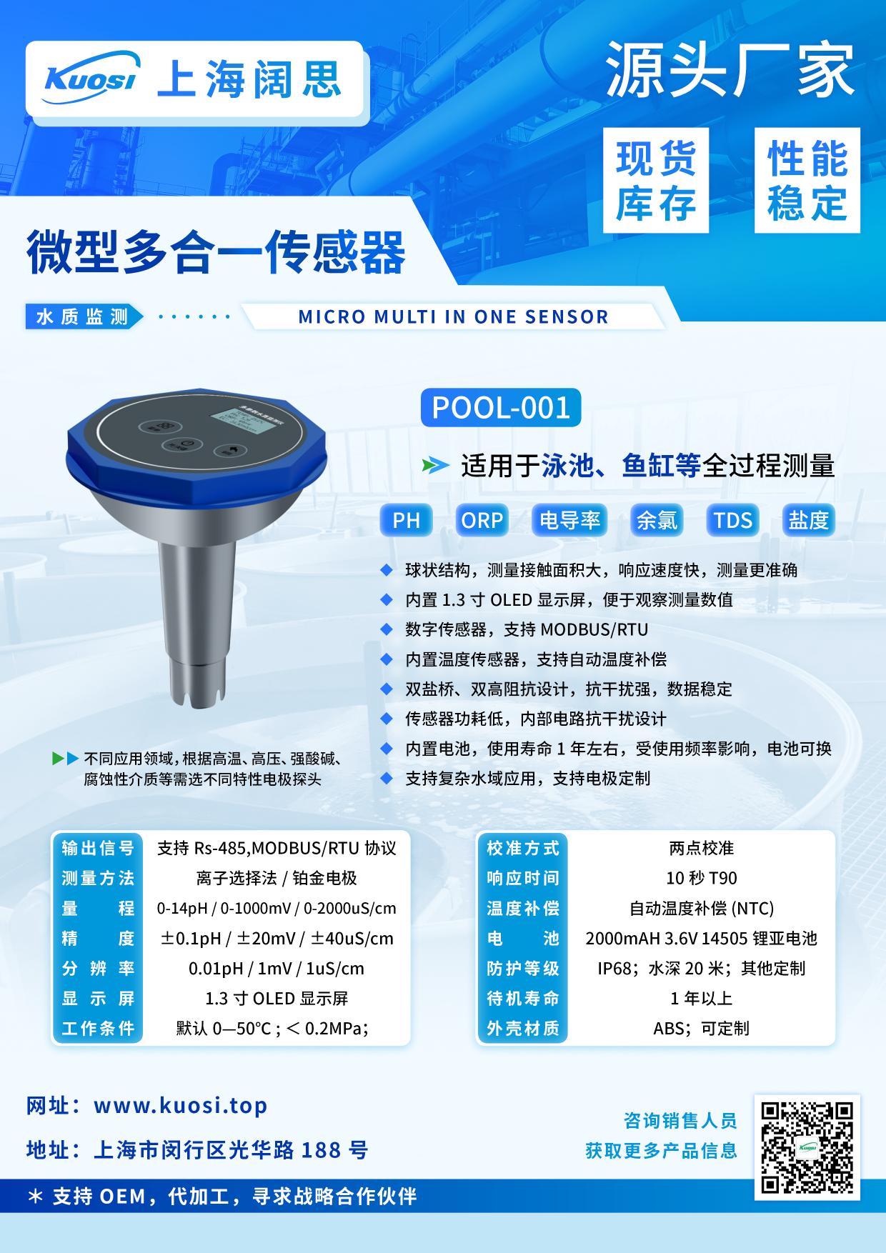 泳池多參數(shù)水質(zhì)分析儀:PH ORP 余氯 濁度 溫度