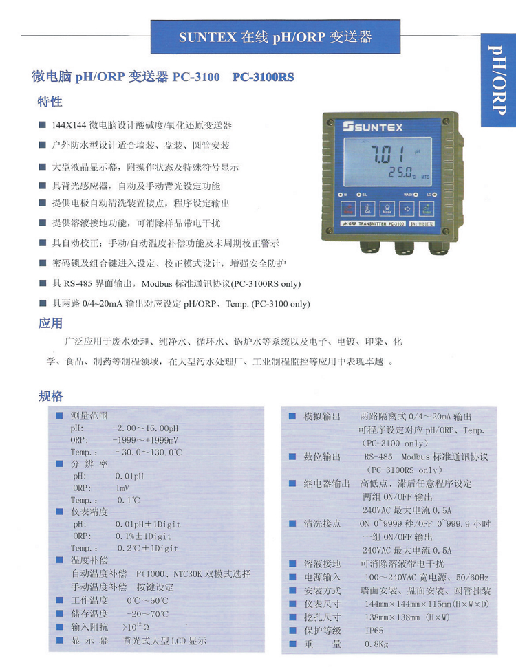 PH計(jì)PC-3100工業(yè)在線純水PH/ORP變送器配梅特勒405-60-SC電極