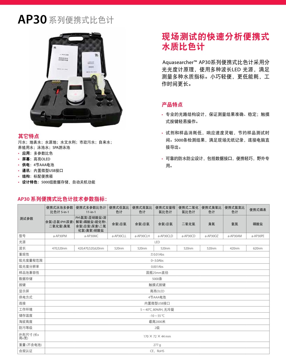 OHAUS奧豪斯AP30/AP40系列便攜式工業(yè)分析比色計(jì)多參數(shù)水質(zhì)分析儀