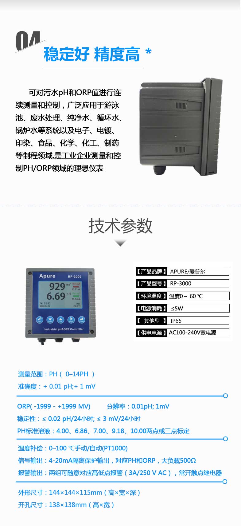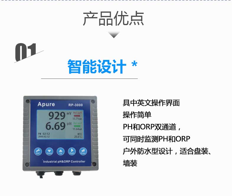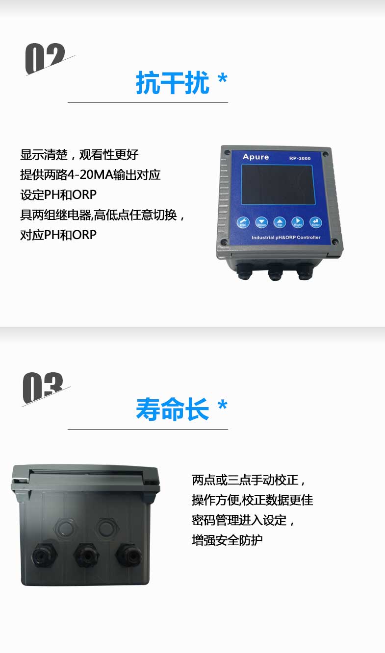 工業(yè)在線酸堿度計RP-3000 PH計測試儀 雙通道PH/ORP控制器愛普爾