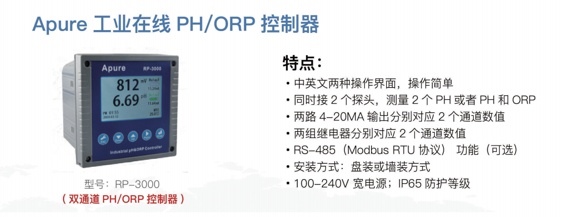 大表,彩屏,可同時測量PH和ORP的數(shù)值